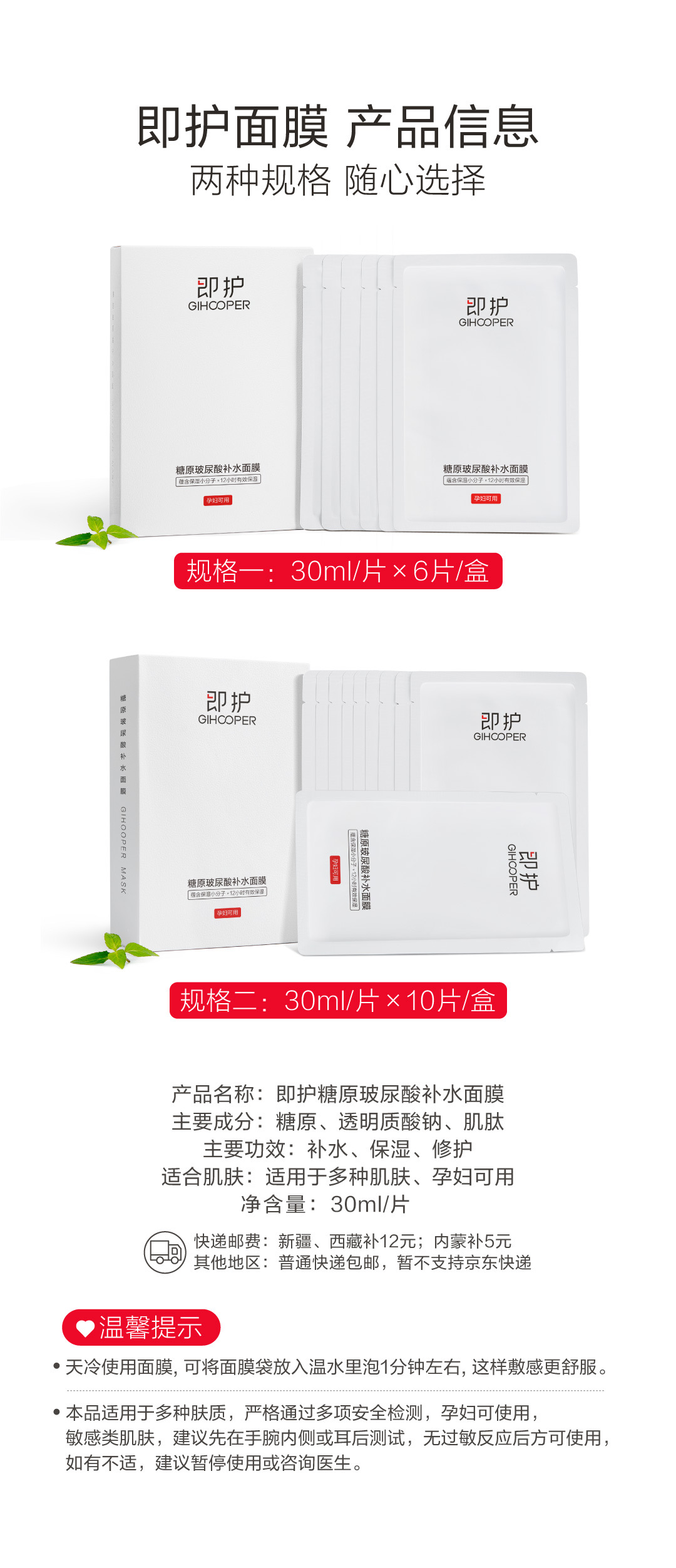 即护面膜 孕妇可用 12小时有效保湿